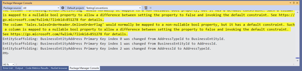Worst yet if you have two int primary keys, it wasn’t always straight forward the order of the keys. Sometimes it is even possible for EF to shift the keys and not inform you.
